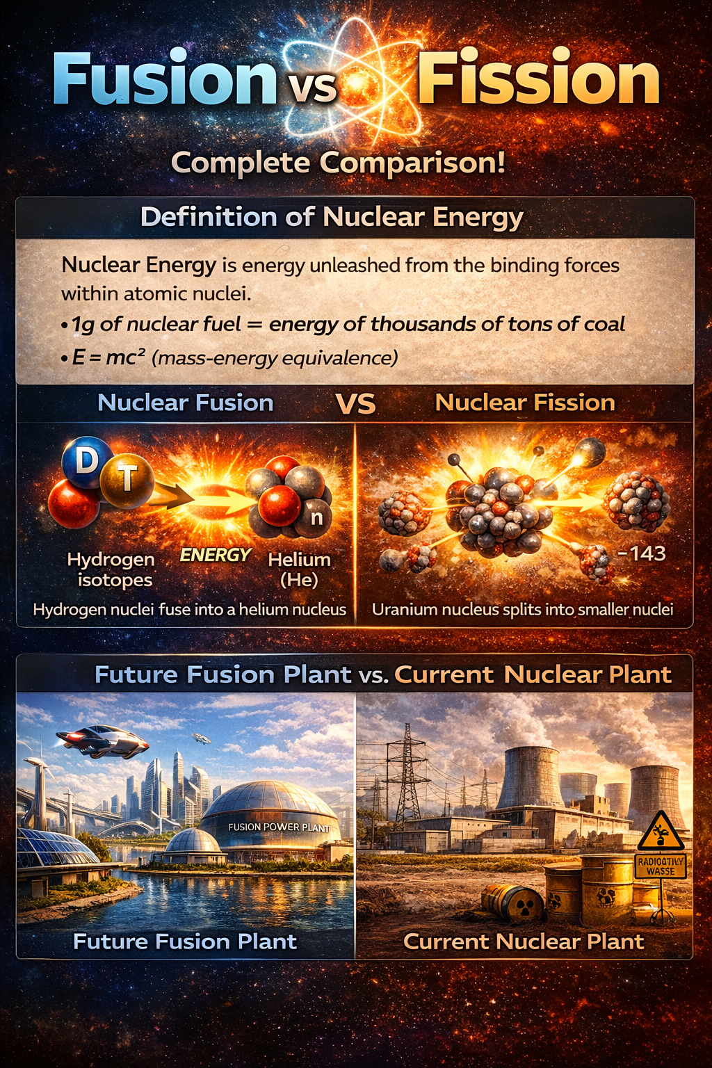 🔥 핵융합 vs 핵분열 완전 비교 — 인류의 미래 에너지는 어디로 향하는가?